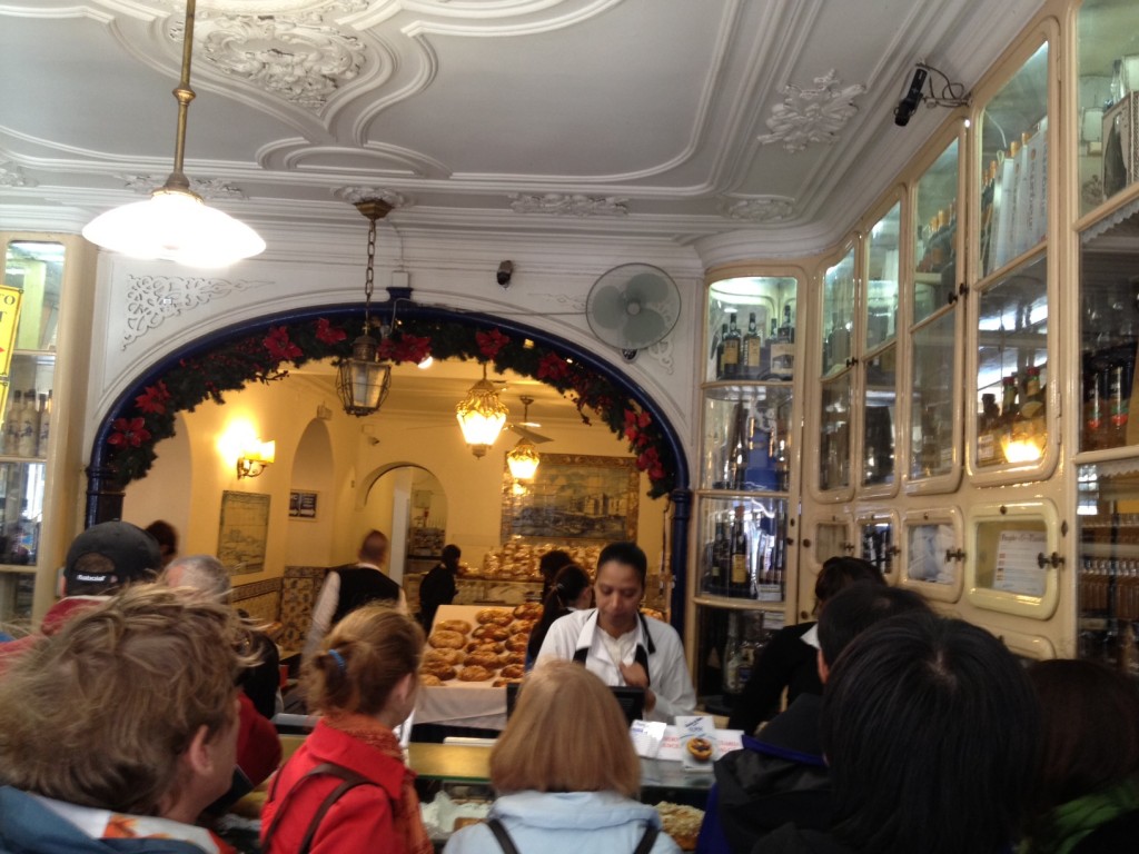 Uzela sam specijalitet, prodaje se svuda po Lisabonu, al ovdje je navodno najbolji – pastéis de nata. Ljudi moji, što da vam kažem, ovo je JAKO ukusno. Ne kužim kako od tako “običnih” sastojaka može nastati nešto tako fino. Prodaju na komad, topli su, tope se u ustima, sa strane dobiješ još zapakiran šećer u prahu i cimet, za posuti gore. Fantastično. Odmah sam potražila i nekoliko recepata, sigurno ću to jednom probati napraviti kod kuće. Evo npr recept 1, recept 2, recept 3…